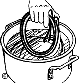 Figure 7: Using a hot plate or other heat source boil a large pot of water. Once the water has come to a boil insert several straps with fasteners inserted. Reduce heat so water remains very hot but not boiling. Allow straps to stay in water at least 2 minutes. Leaving them in longer will not hurt them. Remove one strap and quickly dry with towel.